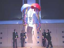 点鐘の後グレンE・エステスRI会長の祝賀メッセージが紹介され、記念講演ではオックスフォード大上席研究員で国際政治学者の山中?子先生(小樽出身)をお招きし「激動の国際社会 日本の今問われる独自外交」と題してたいへん興味深いお話を伺った後、記念懇親会に移り当別RC島義慈会長の開会挨拶に続き、4クラブの会長によるくす玉割りが行われ華やかに会はスタートしました。