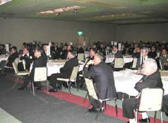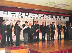 記念式典の最後は千葉ガバナー補佐エレクトより4クラブの次年度会長、副会長、幹事の紹介がありそのまま親睦会に移行しビンゴゲーム等楽しみながら、延べ2時間半に及ぶロータリー100周年の記念例会は最高の盛り上がりの内に『手に手つないで』の大合唱と共にロータリーの今後一層の発展を誓って散会いたしました。