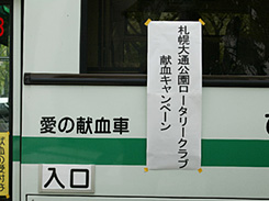 札幌大通公園ロータリークラブは5月27日昼12時から5時まで大通西9丁目でロータリー100周年記念事業の一環としての献血活動を実施しました。