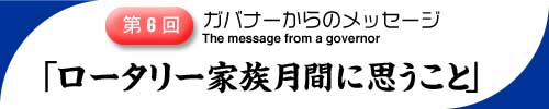 ロータリーが会員を家族から引き離す義務だと思われては困ります。クラブが配慮と思いやりに満ちた雰囲気を奨励し、社交行事や奉仕プロジェクトに家族の参加を得れば、ロータリーは会員にとって生活を豊にする、満足のいく、現実的なものとなります。と述べています。一方、小林 博パスト・ガバナーは「ロータリーの友」5月号の寄稿文の中で、ロータリー家族に一定の理解を示しつつも、2510地区には、2002〜03年度から始まった「家庭奉仕委員会」があり、自分の家族に対する奉仕が、ロータリーの四大奉仕の原点とも言うべきもので、「ロータリーは家庭から」という考えから「家庭奉仕」なのであり、平和で円満な家庭をつくっていく努力をしよう。これはロータリアンとしての人間的資質の向上の狙いがあります。と述べられ「家庭奉仕」と「ロータリー家族」の違いを求められています。