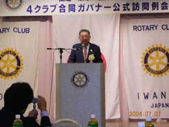 写真は7月7日(水)最初の訪問地、第6グループ関幸吉ガバナー補佐の地元 倶知安において岩内、蘭越、余市を含めた4クラブ合同例会が開催され訪問された時のものです。