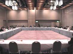 2004年6月27日、札幌パークホテルに於きまして新旧の地区役員が一同に会し引継会が開催されました。当日は午前中に新旧ガバナー補佐引継会、午後からは新旧地区委員長も加わり活動報告および次年度の活動計画の発表などが行われ、引継が完了しました。引継会の後、懇親会が開かれ佐藤秀雄ガバナーはじめ旧地区役員の労をねぎらい、遠藤秀雄ガバナーエレクトはじめ新役員へのエールが送られました。