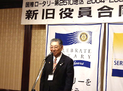 午前中の新旧ガバナー補佐が引き継ぎ会では、遠藤ガバナーは挨拶の中でロータリー創立100周年という記念すべき年度に当りその意義を十分ご理解いただき各グループでまさに「ロータリーを祝おう」を実践されたことに対する感謝と共に労いの言葉をかけられました。