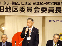 午後からの新旧地区委員長が引継ぎ会では、遠藤ガバナーは今年度で退く委員長を労うと共に、財団中心の活動から職業奉仕へとロータリーの第2世紀へ向かうことを示し、次年度塚原ガバナーへの協力を要請しました。