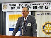 塚原房樹がバナーは今年度のRIのテーマ「超我の奉仕」を受けて地区目標を定め地区チーム研修セミナー、PETS、地区協議会を通じて周知してきました。そして今日、地区内の会員のみなさんに向けてガバナーとして初めてのメッセージを発表しました。 |