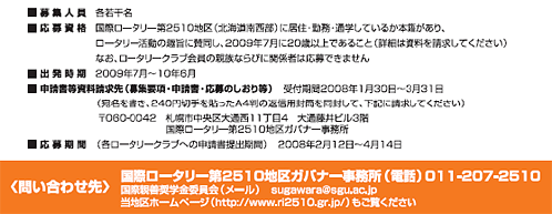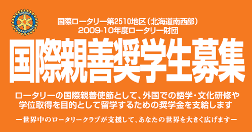 2009-10年度のロータリー財団国際親善奨学生の募集が開始されます。
