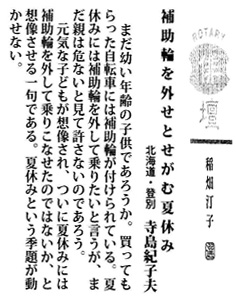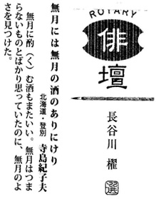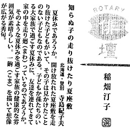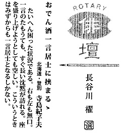 2012年2月の例会卓話で、登別に縁の深い俳人・高浜虚子の「句碑案内記」を紐解き俳句への想いを語った寺島会員が、機関誌・ロータリーの友に寄せて紙面を飾った特選一席3句、特選二席1句、並びに入選7句を紹介させて頂きます。我登別ロータリークラブ切っての俳人であります。