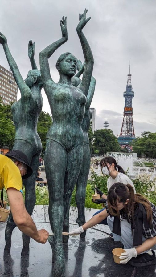 奉仕活動:札幌大通公園 彫刻清掃作業