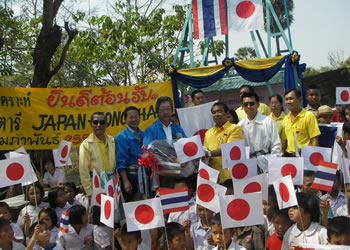 Clean water project in Nongkhai, with Disrict 3340 DG and kids.
